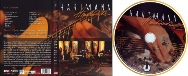 | HARTMANN - Handmade. Live In Concert (DVD5) 2008 Оливер Хартманн (Oliver Hartmann) - немецкий музыкант, певец и композитор получил мировую известность после создания трибют группы "Ehoes", исполняющей классику группы "Pink Floyd". "Ehoes" настолько идентично исполняет произведения PF, что получила одобрение от самого Дэвида Гилмора (David Gilmour) и Роджера Уотерса (Roger Waters), создателей легендарной команды "Pink Floyd".